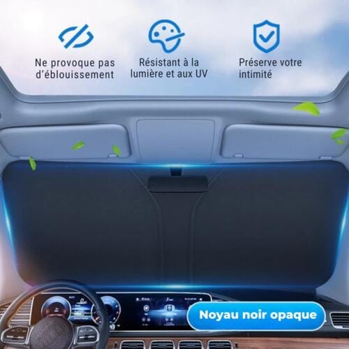 Avec ou sans pare-soleil, la différence est flagrante : sans protection, les plastiques fondent, les cuirs se fissurent, la console surchauffe. Avec ce modèle, tout reste intact et tempéré. Il protège non seulement contre la chaleur, mais aussi contre la décoloration due aux UV, tout en préservant votre intimité. Grâce à son cœur noir opaque, votre habitacle reste à l’abri des regards.